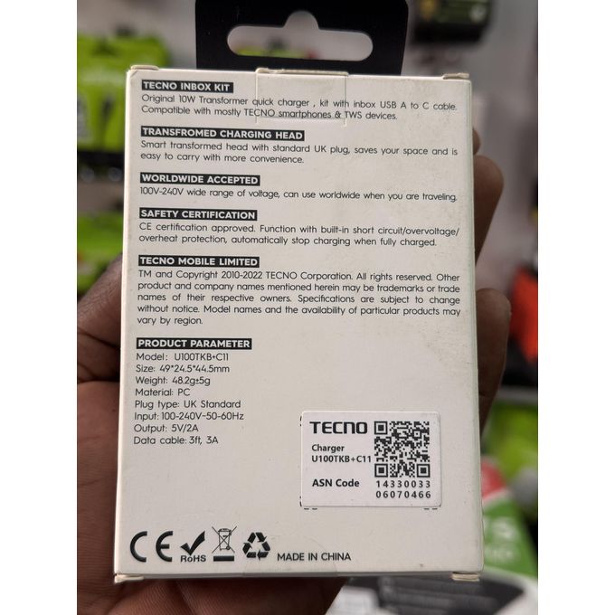 - Tecno 10W Foldable Charger Head (UK Plug)